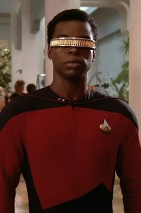 Lieutenant Commander Geordi La Forge was interesting to watch because one automatically tends to look at a person’s eyes when they talk. But as he was blind and had to wear a visor to see things through infrared radio waves, we could never see his eyes. The windows to his soul had to be viewed through his voice and mannerisms, yet I found it very easy to adjust to Geordi as a person without eyes. He was overall a friendly type who was not terribly interesting, but he was nice to have around.