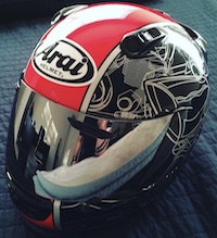 Arai Defiant X helmet. It’s full face since I appreciate my ugly mug and don’t want to lose my jaw if I drop my Shadow. Very expensive helmet but great for long rides.