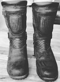 My cruiser mind went “loco” again and I opted for the Icon 1000 Elsinore boots. Freaking crazy boots! They look all Mad Max styled and ready to kick heads. A bit too hooligan-ish for motorcycle boots, but I get compliments on them all the time.